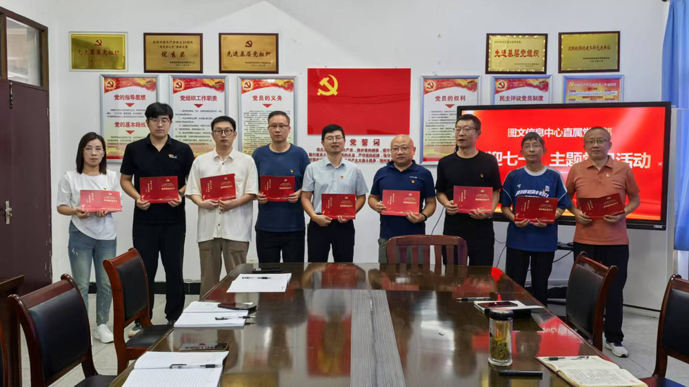 6月25日下午,图文信息中心直属党支部组织主题党日活动,全体党员一起重温入党誓词,合唱红色歌曲,赠送政治生日贺卡,一起交一次党费,党员先锋岗授牌,宣讲红色故事等,共同庆祝党的生日。