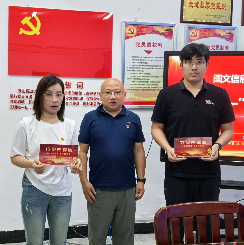 党支部举行“党员先锋岗”授牌仪式,支部书记许迪楼为图书管理、网络运维2个窗口服务部门授予“党员先锋岗”桌牌,勉励党员同志要以“党员先锋岗”为旗帜,在工作中亮出身份、亮出承诺、亮出责任,充分发挥党员的典型示范和引领作用。