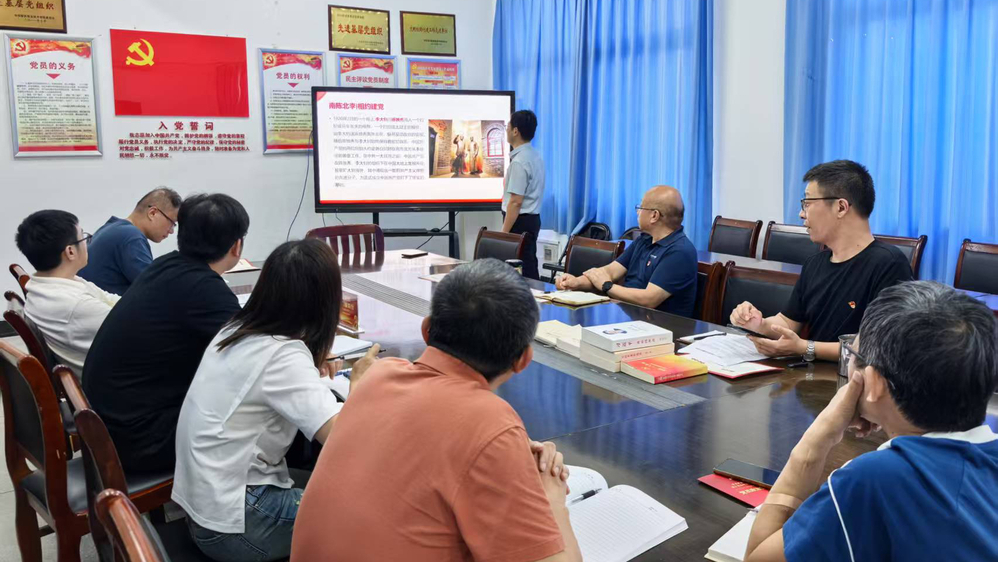 支委委员陈伟用生动鲜活的语言,以讲故事的宣讲形式,讲述了《南陈北李|相约建党》《吃水不忘掘井人》《半条棉被》《腰缠万贯的讨米人》《真理的味道》5个历史故事,为全体党员带来一场有深度、有温度、接地气的“红色文化课”。
