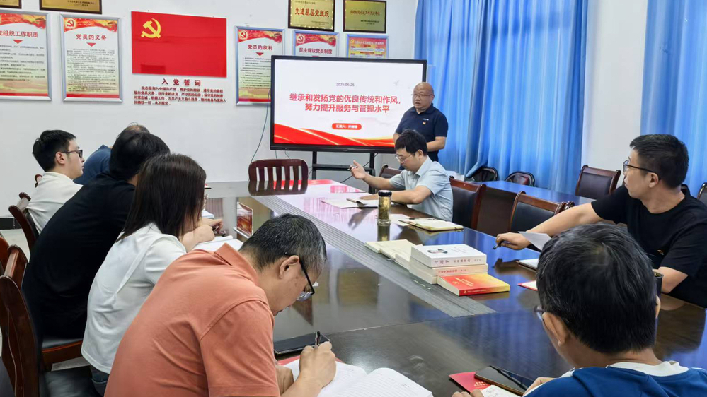 支部书记许迪楼,为全体党员上了一堂精彩的党课,他以“继承和发扬党的优良传统和作风,努力提升服务与管理水平”为主题,阐释了党的作风建设的重要性、党的三大优良作风、优良作风的根源是理想信念、党的光荣传统和优良作风的体现等内容。他还重点讲解了对党忠诚、革命理想高于天、理论联系实际、密切联系群众、批评和自我批评、实事求是、艰苦奋斗、纪律严明、重视调查研究、独立自主等党的优良传统和作风。他希望,全体党员要结合图文信息中心职能,将党的作风建设融入岗位实践,在工作中继承和发扬党的优良传统和作风,努力提升服务与管理水平。党课内容丰富、深入浅出,党员们专心听讲、认真领会,并交流了心得体会,对党的光荣传统和优良作风有了更加深刻的理解和认识。
