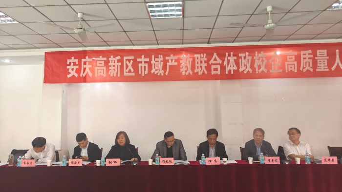 安庆高新区四级调研员范靖勇在讲话中指出,开展政校企合作目的是促成资源共享和优势互补、协同推动人才培养,共同推动毕业生本地就业。市域产教联合体搭建的是一个全新的平台,构筑的是“螺钉”与“螺帽”全方位吻合的关联体。他强调,高新区管委会将牵头对园区技能人才的培养和引进、实习就业等方面出台优惠扶助政策,搭建校企连心桥。园区企业要强化与校方加强沟通对接、创新合作机制,努力成为安庆高校毕业生最大、最近的实习就业基地,让毕业生实现学校学生到企业员工身份的无缝转换。