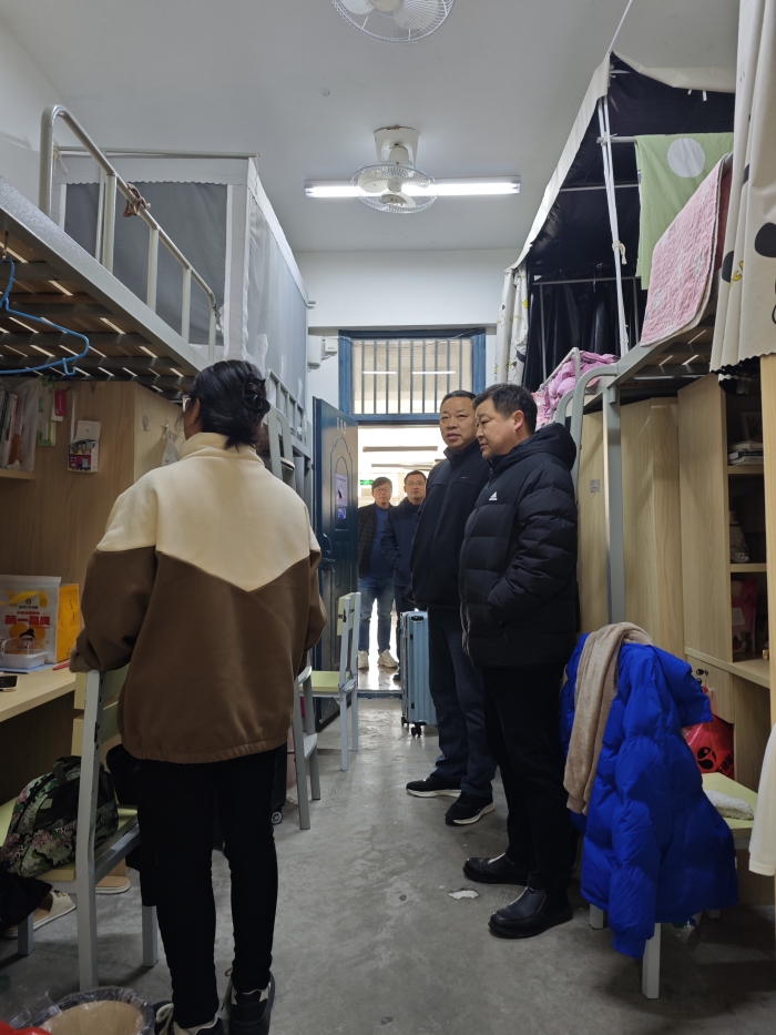 为全面保障2025年春季学期顺利开学,2月15日,党委书记朱灵群、副院长徐飞带队深入学生宿舍、食堂、超市和教学楼等场所,对开学准备工作进行了全面检查。