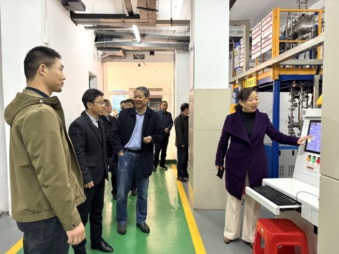 随后,毕明生一行莅临我院指导工作,先后参观了化工单元操作实训基地和化工安全实训基地,观摩实验操作教学课堂,还走进学生食堂及宿舍,与广大青年学子面对面释疑、零距离沟通。毕明生对学院在立足安庆职教集团推动校地企协同发展方面工作给予充分肯定,并就我院在充分发挥化工专业优势、拓展优质就业岗位、推进产教融合及服务地方经济社会发展的总体建设工作提出意见和建议。