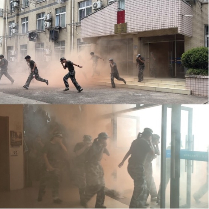 下午2时30分,随着模拟烟雾的升起和急促的消防警报声响起,演练正式拉开帷幕。宿舍楼内学生在辅导员和教官的指引下,迅速反应,用湿毛巾捂住口鼻,弯腰低姿,按照预定的疏散路线,快速、有序地向楼外安全地带撤离。整个疏散过程共用时2分40秒,全程紧张有序,所有参演师生全部安全抵达指定集合点,达到了预期的演练效果。