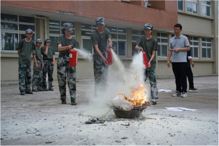 疏散环节结束后,学院学生处副主任方波为全体新生进行了灭火器使用方法的现场教学。他详细讲解了干粉灭火器的“提、拔、握、压”四字使用口诀,并现场演示了如何扑灭初期火情。在认真观摩后,多名新生代表在方波的指导下进行了实操体验,亲手操作灭火器,成功将模拟火点扑灭。这种理论与实践相结合的方式,使抽象的安全知识变成了具体的实战技能,有效增强了学生应对突发火情的信心和能力。