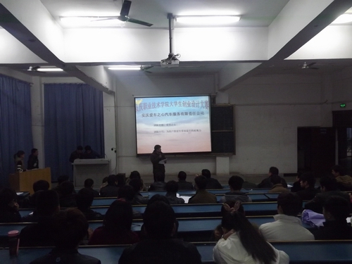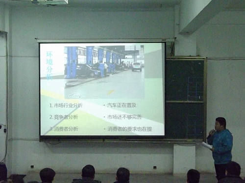 根据年前系部的部署和安排,参赛作品必须是前期经过市场调研,严格的市场可行性分析基础上完成的创业计划书。同学们参与热情较高,共提交17份项目策划书,参与人数多达100多人。经过前期初筛,共11支参赛队伍进入此次比赛。每组共有15分钟参赛时间,前8分钟为项目介绍与展示,后7分钟为评委提问与答辩时间。在这15分钟内参赛选手个性突出,选择不同的表现形式,有的严谨干练,有的生动活泼,如13汽修3班“丹姿相框”负责人黄少强以一首《愚公移山》作为开场白,带动了现场氛围,赢得了现场师生的广泛好评。