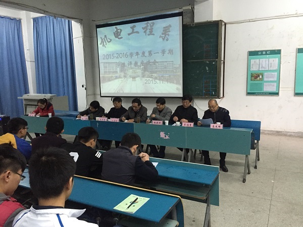 11月11日下午,机电工程系在一栋教学楼208会议室开展了期中教学检查活动。机电工程系督导朱永忠教授、院教务处工作人员、系分管教学工作负责同志、系教研室主任参加了此次检查工作。检查组认真查看了教学值班记录、班级教学日志、教师调、停、补课记录、教研室工作手册、教师教案、授课手册、学生作业与实训报告等材料,并分项给予每位老师评分。检查发现,机电工程系各项材料登记规范,教师教案编写科学合理。