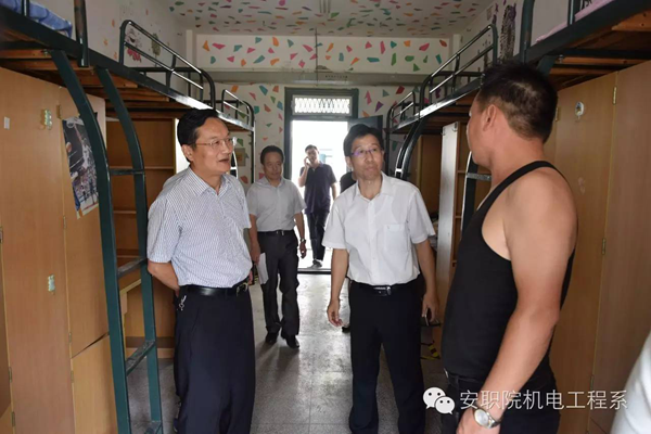为进一步做好新生入学教育工作,帮助新生尽快熟悉和适应大学生活,为他们营造安全舒适的宿舍环境,院党委书记王进,副院长毕明生,副院长占峰带领院迎新工作小组,在系分管学生工作负责同志的陪同下,看望和了解新生住宿环境及宿舍安全情况。