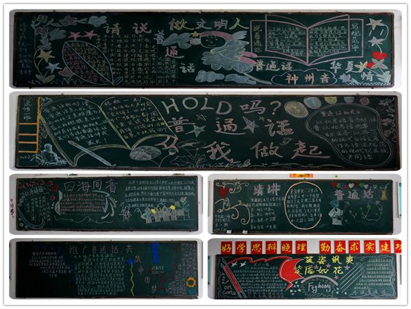 这次活动旨在配合学院大力推行和规范使用国家通用语言文字,提升国民语言能力,弘扬中华民族优秀传统文化,为建设与综合国力相适应的语言强国、全面建成小康社会提供有力支撑。活动中,各班级积极筹划,积极参与,板报主题鲜明、布局美观、图文并茂,强调了学习推广普通话和使用规范汉字的重要性。有的含蓄内敛,充满文化气息;有的优雅美观,又充满知识趣味性;有的华丽张扬,尽显中华风采!使同学们在视觉享受的同时充分体会到普通话的重要性及中国文化的内涵。