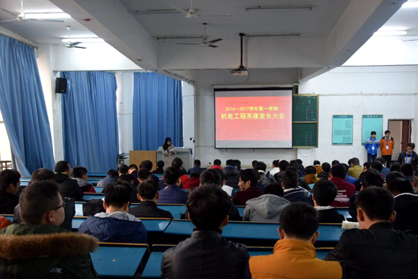 为了进一步提高寝室长队伍整体素质和工作能力,锻炼和塑造一支品质好,作风硬,能力强的学生寝室长队伍,机电工程系于11月22日在一栋教学楼216教室举办寝室长大会。系分管学生工作负责同志、全体专、兼职辅导员、团总支学生会成员及15级、16级各寝室长参加了本次会议。