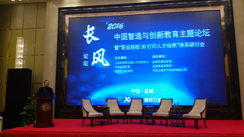 由工业和信息化部人才交流中心主办,盐都区委组织部、盐城国家高新技术产业开发区、西锐三维打印科技有限公司具体承办的2016年新型工业化能力建设“长风论坛”—中国智造与创新教育主题论坛于2016年11月26日-27日在盐城高新区举办。本次论坛的主题为“中国智造与创新教育”,围绕西锐三维3D打印人才培养体系展开研讨。我院副院长谭维奇应邀参加本次论坛并在研讨会上交流发言。