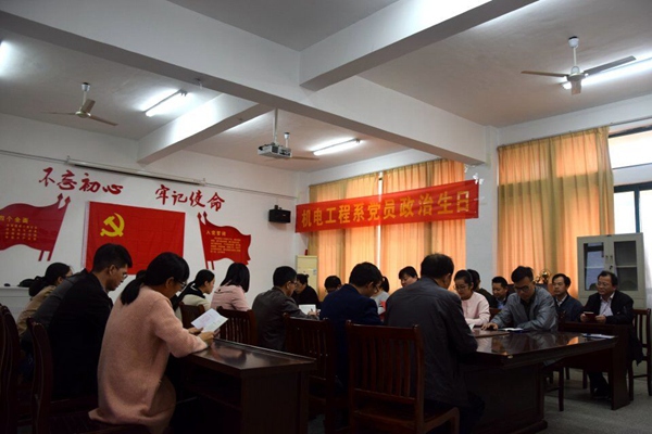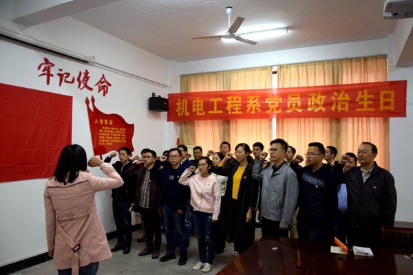 为进一步加强党员教育管理,增强党员的党性观念和政治荣誉感,激发党员的工作积极性、主动性和创造性。11月5日,机电工程系党总支在党员活动室开展了以“不忘初心、不忘使命”为主题的党员“政治生日”活动,为8位党员集体“庆生”。