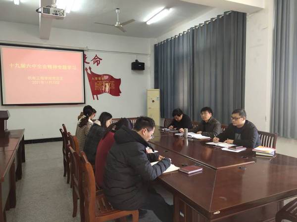 11月23日下午,机电工程学院党总支在208会议室召开专题会议,学习党的十九届六中全会精神。