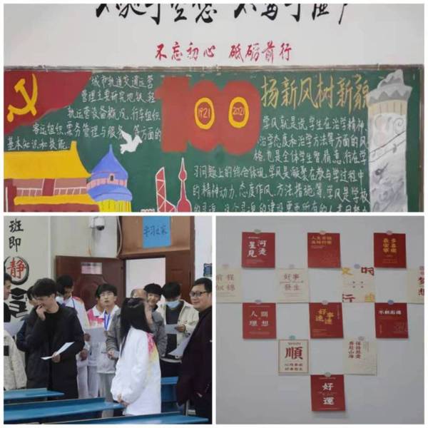 继初秋迎新,揭开“三全育人”第一序章后,我院团总支学生会继续扎实推动“三全育人”工作,于11月中旬开展了“立德求知 砥砺前行”教室美化设计大赛。2021级各班根据班级和专业特点,巧妙构思,精心设计,营造出个个主题鲜明、色彩和谐又各具特色的教室文化场景,机器人手臂画图、手工制作的班级公约、电脑绘图制作的城轨列车……专业文化进教室,营造了良好的文化氛围。