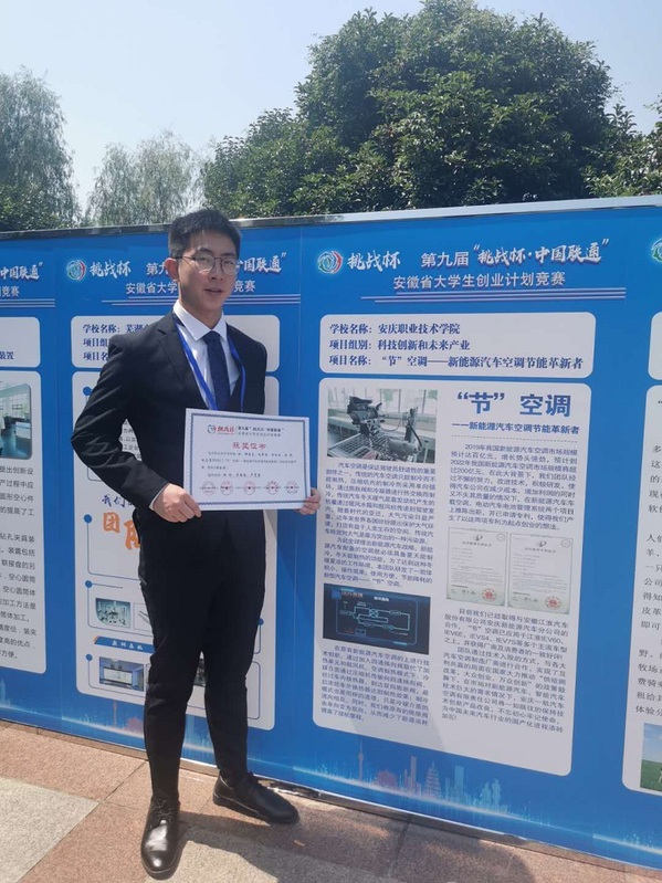 郑夏星同学在校表现优异,曾任班级副班长、 CAD兴趣爱好者协会副会长。曾荣获第五届“互联网+”大学生创新创业大赛国赛铜奖、省赛金奖;第十四届安徽省职业生涯规划暨创业大赛银奖,接连斩获第九届“挑战杯·中国联通”大学生创业计划竞赛金奖;首届安徽省中华职业教育创新创业大赛金奖等多项国家级、省级创新创业类奖项。参与多项国家专利研发和计算机软件著作权撰写。(文:李承鹏 审稿:刘磊)