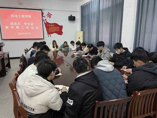 2月23日中午,机电工程学院在208会议室召开团总支学生会新学期工作会议。学院分管学生工作负责同志、团总支书记、团总支副书记及全体团总支学生会学生干部参加会议。