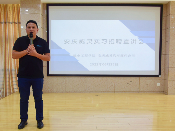 为进一步服务和支持安庆市重点招商引资项目,同时也为20级学生提供高质量就业实习岗位,促进高质量就业,6月23日下午,机电工程学院邀请安庆威灵汽车部件有限公司在1号教学楼216教室为2020级学生举行实习宣讲会。