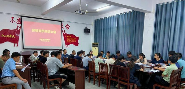 6月29日下午,机电工程学院党总支在1号教学楼208会议室举行接收预备党员及预备党员转正大会。会议由第二党支部书记主持,总支全体党员以及2022年上半年党员发展对象、学生预备党员参加。