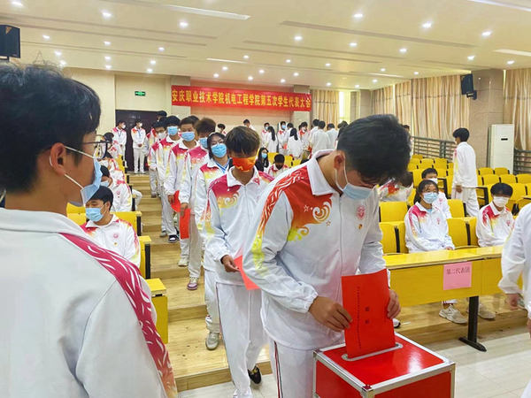 会议选举环节,秉承“公开、公平、公正”的原则,全体代表通过无记名投票方式,在监票员和计票员的监督统计下顺利完成投票,最终选举产生了机电工程学院第五届学生委员会委员、第二十届学生会主席团执行主席以及出席学校第五次学生代表大会的学生代表。