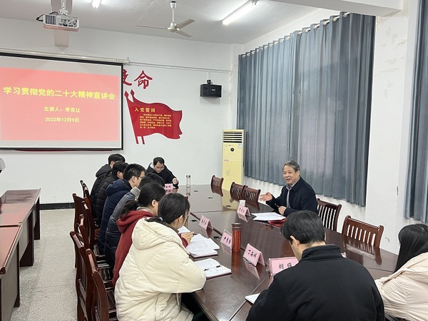 李克让从三个方面进行宣讲。一是充分认识学习宣传贯彻党的二十大精神的重要意义。学习宣传贯彻党的二十大精神能够让全党全国各族人民更加紧密团结在以习近平同志为核心的党中央周围,高举中国特色社会主义伟大旗帜,坚定“四个自信”,增强“四个意识”,拥护“两个确立”,践行“两个维护”。对于伟德官网广大师生而言,可以做到“四个增强”,增强运用党的创新理论武装头脑的政治自觉;增强运用习近平新时代中国特色社会主义思想指导实践的能力水平;增强精准把握历史大势时代潮流的敏锐眼光;增强投身全面建设社会主义现代化强国的使命担当。二是认真学习领会党的二十大精神要义。要深刻领会党的二十大的主题;要深刻领会过去5年的工作和新时代10年的伟大变革;要深刻领会开辟马克思主义中国化时代化新境界;要深刻领会新时代新征程中国共产党的使命任务;要深刻领会中国式现代化的中国特色和本质要求;要深刻领会社会主义经济建设、政治建设、文化建设、社会建设、生态文明建设等方面的重要部署;要深刻领会教育科技人才、法治建设、国家安全等方面的重大部署;要深刻领会国防和军队建设、港澳台工作、外交工作等方面的重要部署;要深刻领会坚持党的全面领导和全面从严治党的重要部署。三是深入学习践行党的二十大报告中对高职教育和做好青年工作的相关要求。党的二十大报告中突出了职业教育的地位,指出统筹职业教育、高等教育、继续教育协同创新,推进职普融通、产教融合、科教融汇,优化职业教育类型定位。在青年工作中,党的二十大报告启示我们要做学生们的知心人,做青年工作的热心人,做青年人的引路人。