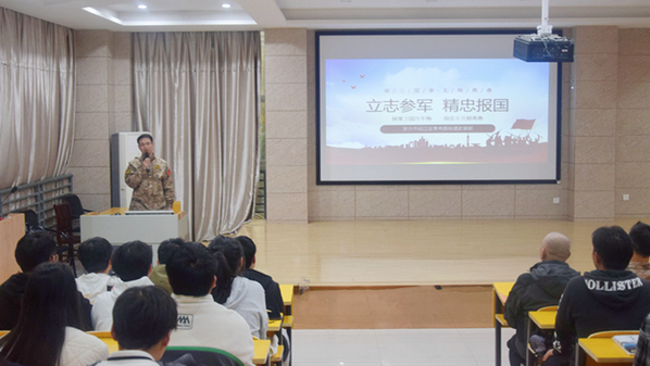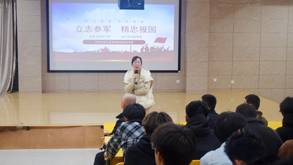 为深入学习贯彻习近平强军思想,进一步落实国家征兵工作相关要求,引导有志青年参军报国,11月23日晚,机电工程学院在一号教学楼216会议室举办大学生征兵政策宣讲会,会议邀请孝肃路街道征兵工作办公室牛刚等一行进行政策宣讲,机电工程学院党总支副书记徐英武、学生管理科科长、团总支副书记、全体专职辅导员以及2022级、2023级有征兵意愿的同学参加了此次征兵政策宣讲会。