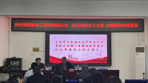 11月25日上午,校党委副书记李克让到所联系的党总支和所在党支部作题为《深刻感悟习近平新时代中国特色社会主义思想的重大理论创新》的主题教育专题党课。机电工程学院党总支书记、院长刘磊主持会议。机电工程学院党总支、机关党总支第五支部党员和入党积极分子40余名同志聆听。