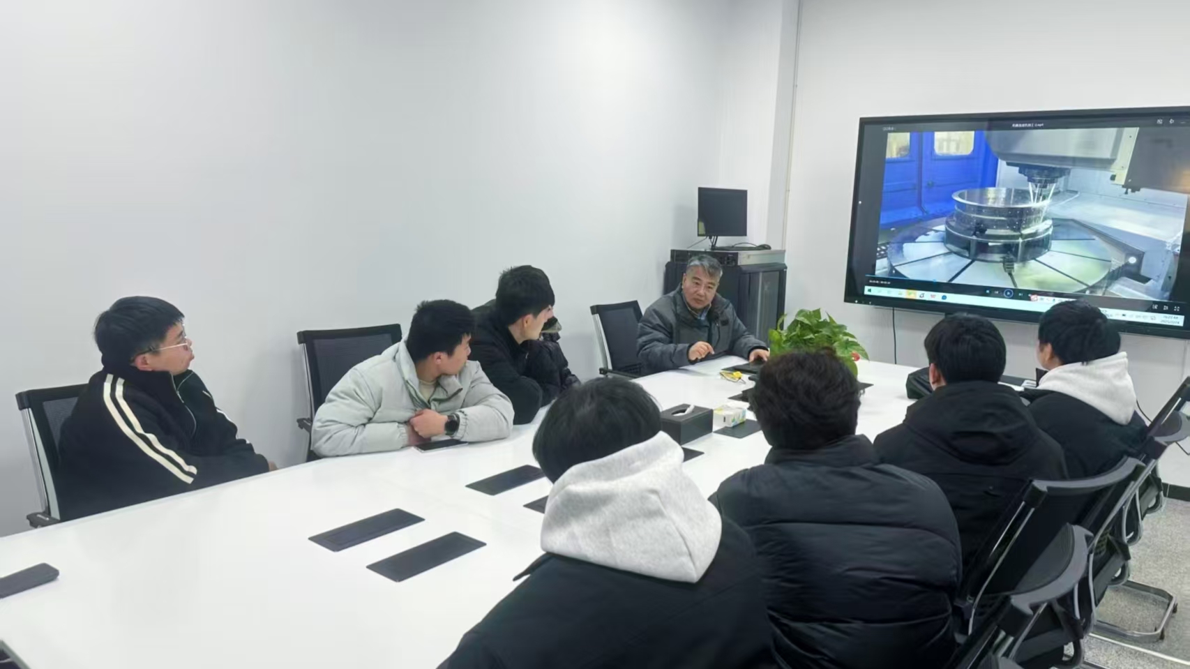 夏总详细介绍了企业引进先进设备、严格遵循工艺流程以及构建完善质量管理体系的情况,并强调高技能人才对企业持续创新的关键作用。学生们则抓住机会,围绕设备操作、编程技巧和工艺控制等问题,积极提问,与现场工程师展开热烈的互动交流,对专业理论与实际应用之间的紧密联系有了更深刻的理解。