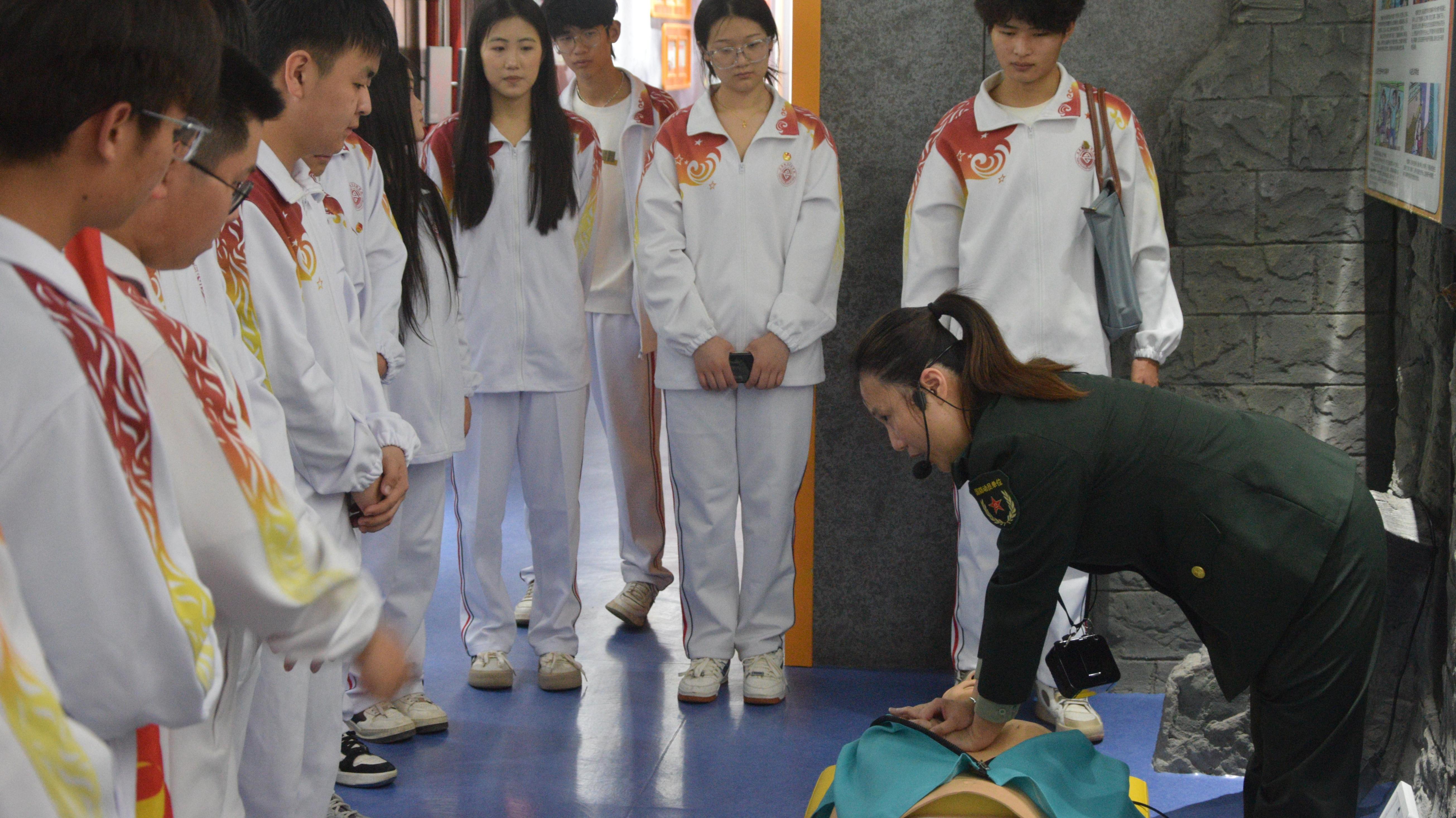 学生们跟随着讲解员的步伐,沉浸式体验了一场又一场与国防安全紧密相关的活动:空袭实景模拟、亲手操作手摇报警器、穿越火灾逃生通道、学习消防器材使用、实践心脏复苏急救……一系列丰富且实用的活动,极大地增强了学生的国家安全意识和危机处理能力。