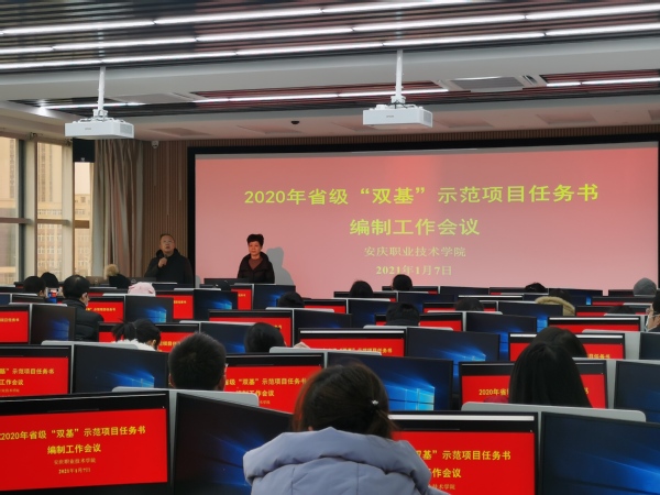 1月7日上午,伟德官网在1号教学楼1+X证书考培室召开2020年省级“双基”示范项目任务书编制工作会议,统筹安排安徽省高等学校省级示范基层教学组(教研室)、教学示范课任务书编制工作相关事宜。副校长谭维奇出席会议并讲话。获准立项的3个示范基层教学组织(教研室)和59门教学示范课负责人及有关人员参加会议。