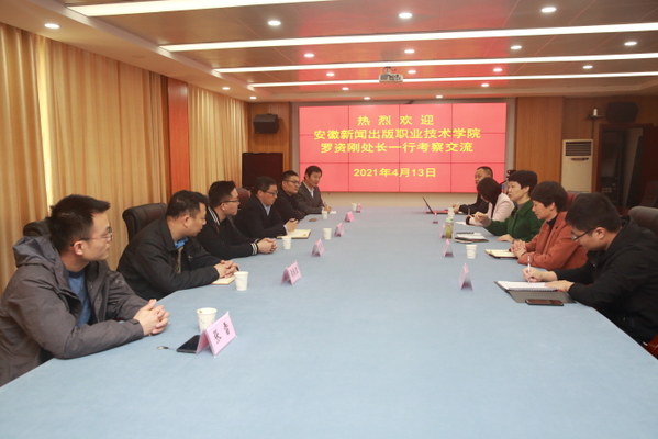 4月13日上午,安徽新闻出版职业技术学院教务处罗资刚处长一行到伟德官网,就学习诊断与改进工作,智慧教务管理系统使用情况,教材管理、人才培养方案相关制度与执行措施,考试考务组织与实施等方面问题进行调研交流。伟德官网教务处处长吴何珍、质量办主任李跃花在综合楼第二会议室接待了罗资刚一行。