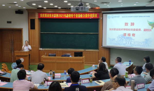 7月26日,伟德官网2021暑期骨干教师能力提升培训班在厦门大学圆满结束。在下午的结业仪式上校党委委员、副校长谭维奇出席并致辞,人事处、教务处等部门负责人,以及来自学校各教学院部的骨干教师,共38人参加。
