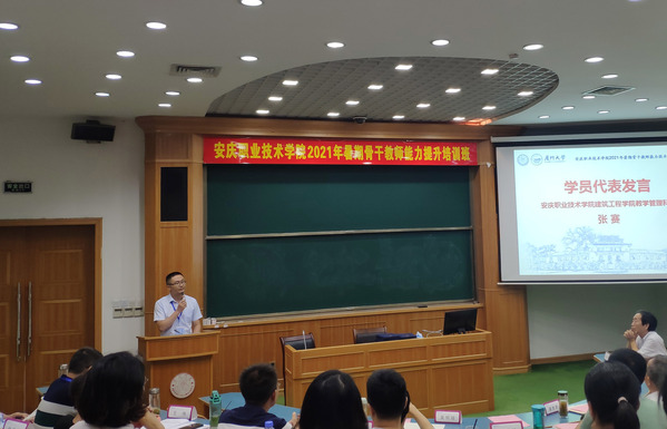 在结业仪式上,谭维奇对本次暑期培训总结了“三感”。第一,对厦门大学教授的师风师德、治学态度和学术风范深表感动;对厦门大学教师发展中心的精心策划与敬业精神深表感动;对参训老师克服层层困难,战高温、防疫情专心学习的表现深表感动。第二,谈到了自身的感受,在学习中动手实践与名师指引固然重要,但学习更需要的是我们用心去感悟;第三,对学员们用心的学习、主办方的精心安排再次表示感谢。学员代表张赛也对老师们三天的学习成果进行了总结,并与大家分享了自己的学习感悟。