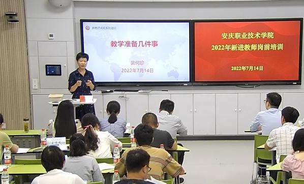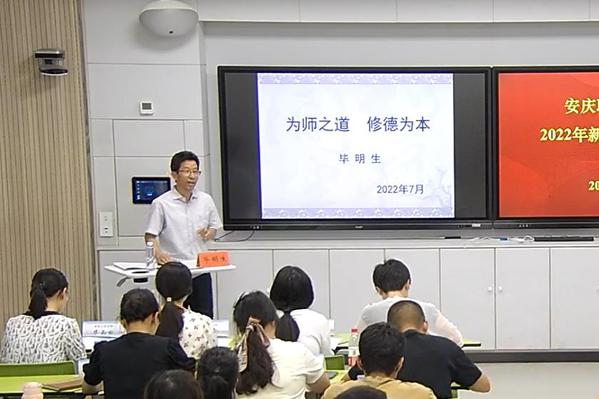 7月13日至7月16日,伟德官网在2号教学楼102智慧教室开展2022年新进教师校本培训。校党委副书记、校长毕明生,校党委委员、副校长谭维奇,校党委委员、组织部部长、人事处处长高润霞,校党委委员、宣传部部长吴何珍出席并作专题讲座。教务处、组织人事处、科技处等部门负责同志作辅导报告。本次校本培训特别邀请了安庆师范大学的宋志英教授、王爱菊教授为新进教师作专题讲座。学校近两年新入职的35名教师参加了本次校本培训。