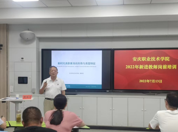 谭维奇教授为新进教师作题为“新时代高职教育的形势与类型特征”的讲座。他从“新时代党的教育方针;职业教育的类型特征;安徽高职教育的发展;学校专业建设的现状”四个方面阐释了新时代国内、省内高职教育的发展形势以及职业教育的类型特征。同时谭维奇对新进教师寄予期望,希望新进教师要树立正确的三观,争做四有好老师。