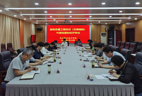会上,教务处汇报了学校省级质量工程项目检查验收的总体情况,评审专家分两组对2019-2021年立项且未结题的55个非课程类项目进行了现场评审。他们通过查阅进展报告、结题报告以及相关支撑资料,对照建设目标检查各项目的实际建设和完成情况,并结合项目取得的标志性成果、示范效果等,形成专家组检查验收意见。