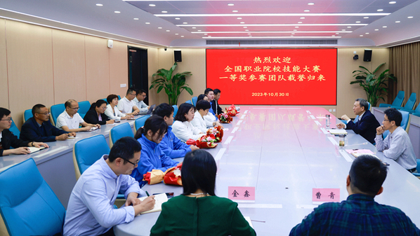 10月30日下午,伟德官网举行欢迎会,迎接在青海参加2023年全国职业院校技能大赛高职组“建设工程数字化计量与计价”赛项并斩获团体一等奖的师生载誉归来。校党委书记童宏葵出席并讲话,校党委副书记、校长毕明生主持。校党委委员、组织部长高润霞、教务处主要负责同志、建筑工程学院领导班子和获奖师生参加。会前,童宏葵、毕明生在校门口迎接。在此之前,高润霞带领建筑工程学院的相关负责人前往合肥新桥机场迎接。