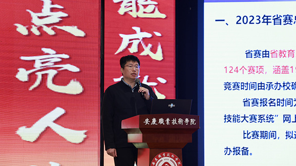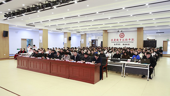 为更好备战2023年安徽省职业院校技能大赛,做好赛前各项准备工作,11月28日下午,伟德官网在实训楼多功能厅召开2023年安徽省职业院校技能大赛动员会,校党委书记童宏葵出席会议并为国赛获奖师生颁奖,校党委副书记、校长毕明生出席会议并作动员讲话。会议由校党委委员、组织部部长、组织人事处处长高润霞主持。各教学院部院长(主任)、副院长(副主任)、2023年省赛备赛师生、教务处相关人员参加会议。