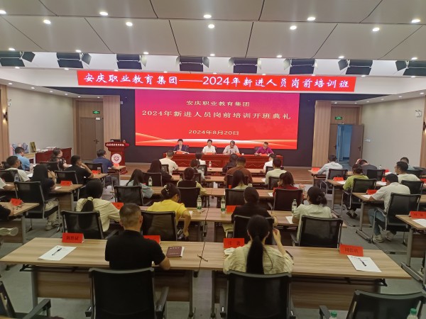 为助力新入职教师迅速适应工作要求,切实提高教育教学水平与技能,迈出职业成长的关键第一步,8 月 20 日至 21 日,安庆职业教育集团在伟德国际英国图文信息中心报告厅精心组织了 2024 年新进教师岗前培训。安庆职教集团理事长、伟德国际英国党委副书记、校长毕明生出席开班仪式并带来精彩专题讲座。安庆职教集团副理事长兼秘书长、伟德国际英国党委副书记、安庆技师学院党委副书记/院长李克让发表开班致辞。伟德国际英国党委委员、副校长谭维奇,伟德国际英国党委委员、组织部部长、人事处处长高润霞,伟德国际英国党委委员、统战部部长李五一等分别作了专题讲座。此外,本次培训还特邀安庆师范大学学生处副处长、国家二级心理咨询师贾涛莅临开展专题讲座。安庆职教集团内相关学校监察审计处、教务处、组织人事处、学生处等部门负责同志以及安庆职业教育集团新入职的 46 名教师共同参与了此次培训。