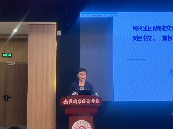 谭维奇带来《新时代职业教育的形势与类型特征》讲座。他从“新时代党的教育方针、职业教育的类型特征、安徽高职教育的发展、学校专业建设的现状”四个方面,深入阐释了新时代国内、省内高职教育的发展形势以及职业教育的类型特征。同时,谭维奇对新进教师寄予厚望,希望他们树立正确“三观”,努力成为“四有”好老师。