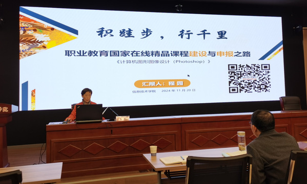 本次活动邀请了超星平台培训讲师徐畅和信息技术学院程园老师进行专题分享。徐畅讲师围绕“AI赋能:数字化课程建设与教学实践”主题,详细介绍了智慧课程建设背景,并结合优秀案例,深入解析了人工智能技术在课程开发中的实际应用,为教师提供了全新的技术视角。程园老师以“Photoshop在线精品课程的建设之路”为主题,结合自身实践,围绕精品课程建设与申报进行了深入分享。