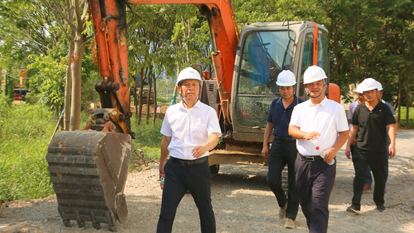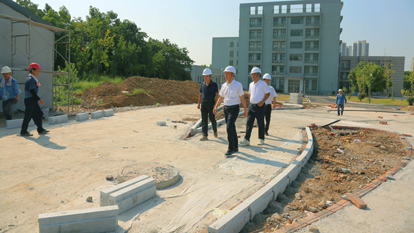 暑期校园,烈日炎炎。学校内的工程施工也像炎热的天气一样,正在紧锣密鼓的火热进行着。为详细了解工程项目建设情况,看望慰问施工一线工作人员,推动项目顺利进行,8月12日上午,校党委书记童宏葵带队,实地调研了学校8处暑期重点项目,并召开2023年度暑期重点项目推进会。校党委委员、副校长程飞,基建处、教务处、项目施工方、监理方主要负责同志一同参加。