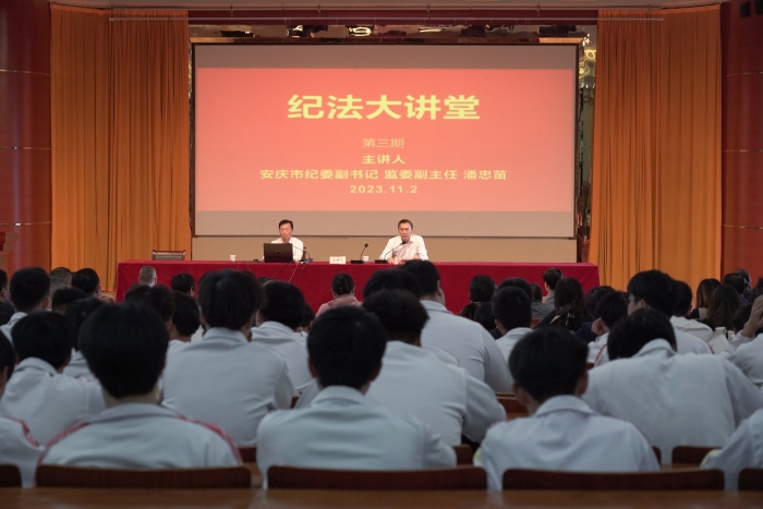 为认真学习贯彻落实党的二十大和中央、省市纪委全会精神,扎实推进第二批主题教育,塑造风清气正的校园环境,增强全校党员和干部廉洁自律意识,11月2日,伟德官网举办第三期“纪法大讲堂”宣讲活动。本次宣讲邀请市纪委副书记、监委副主任潘忠苗作专题报告。校党委书记童宏葵主持本次宣讲活动。校领导、副科级及以上干部、专职辅导员以及学生干部代表共180余人参加。