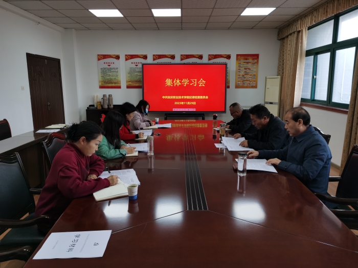 11月29日下午,校纪委组织纪检干部和纪委委员集体学习。校党委委员、纪委书记陈继平参加会议。学习会由校纪委副书记、监察审计处汪群同志主持。 会议集体学习了省委常委、省纪委书记刘海泉在省纪委常委会议上关于聚焦监督重点,强化贯通协调,推进政治监督具体化精准化常态化的讲话精神;市委书记张祥安在调研全面从严治党、党风廉政建设和反腐败工作时关于加强廉政教育提升监督质效,为现代化美好安庆建设提供坚强保障的讲话精神。会议还组织全文学习了《事业单位工作人员处分规定》。