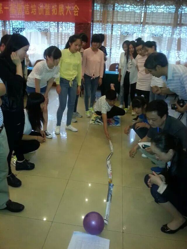 在富有创意的微信签到后,朱重生和协成国际董事长杨根莲分别讲话,他们希望所有大学生在实践锻炼中学习,在体验学习中改变,在体验奉献、协作、勇气带来的成功喜悦后,能感悟到“梦想、激情、责任、协作、自信”的精髓。微信培训中,协成国际下属安庆市点赞信息科技有限公司杨未望经理以微信互动为重点,详细的阐述了微信在日常生活中的种种功能。拓展活动更是吸引了所有学生的兴趣,全体学生分成四组,在队长的带领下,在期盼、好奇中参加了猜猜我是谁、发挥想象、极品飞车、背身头球四项拓展运动。现场喝彩声、加油声、惋惜声不断响起,一张张年轻的面孔无不展示着我院莘莘学子的青春活力。本次拓展活动第三小组最终获得第一名。