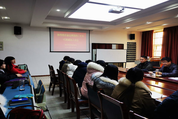 1月11日下午,现代商务学院在3号教学楼417会议室开展党支部书记述职和安徽省出席党的二十大代表候选人提名推荐工作,全体党员参加了本次会议,院党总支书记、院长高飞主持会议。