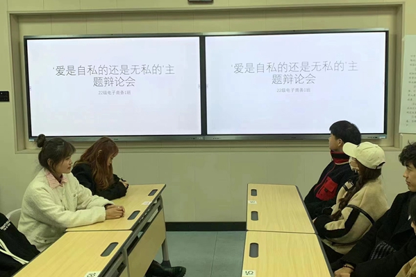 “爱是无私的还是自私的”——22级电商一班开展班级辩论赛