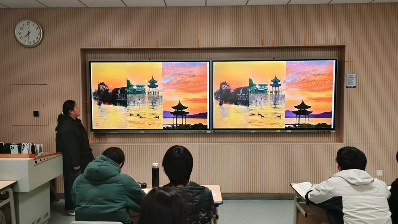 活动过程中,同学们围绕“爱祖国”的主题,通过照片、视频等形式,形象生动地描绘了祖国的魅力河山:从蜿蜒于崇山峻岭之间、似巨龙守护华夏大地的万里长城,到风光旖旎、如诗如画、山峰秀丽的桂林山水,再到翠海、叠瀑、彩林、雪峰交相辉映,神秘莫测的九寨沟。有的同学还满怀激情地介绍了祖国的蓬勃发展历程,展现了祖国从积贫积弱到繁荣昌盛的伟大跨越、科技的日新月异等。伴随着同学们生动的讲解,倾听者仿佛身临其境,不由地沉醉其中,在衷地赞叹着祖国大地的壮丽河山的同时,也深刻地领悟到了祖国发展的艰辛与辉煌,对国家的热爱与敬意更增几分。
