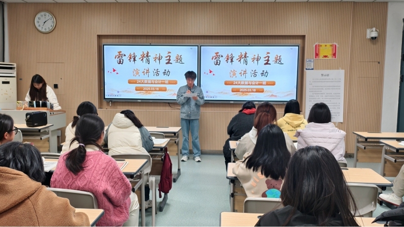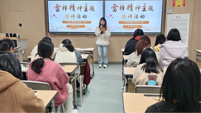 六十余载岁月流转,“雷锋”这个名字始终如星辰闪耀,穿透时空,照亮一代代中国人的精神坐标。站在新时代的潮头,雷锋精神不仅是对“为人民服务”的朴素诠释,更是青年与时代同频共振的信仰火炬。为进一步弘扬雷锋精神,培育和践行社会主义核心价值观,3 月 18 日,24级大数据与会计一班在502教室成功举办了一场以“传承雷锋精神”为主题的演讲活动。