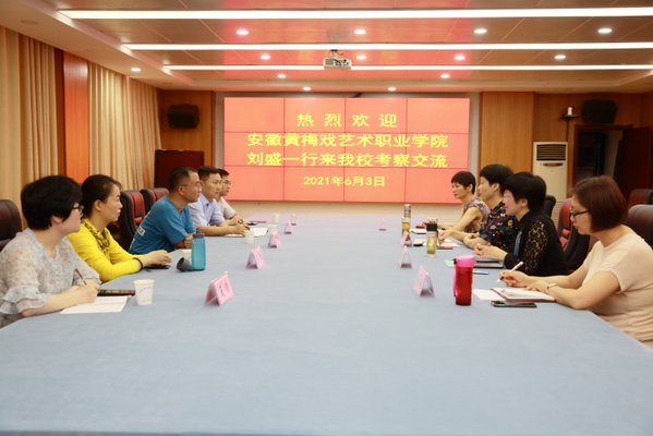 6月3日上午,安徽黄梅戏艺术职业学院党委委员、办公室主任刘盛一行到伟德官网就教学诊改事宜进行考察交流。伟德官网党委委员、副校长谭维奇在综合办公楼第二会议室接待了刘盛一行,诊改办、教务处、学生处、质量办负责同志参加交流。