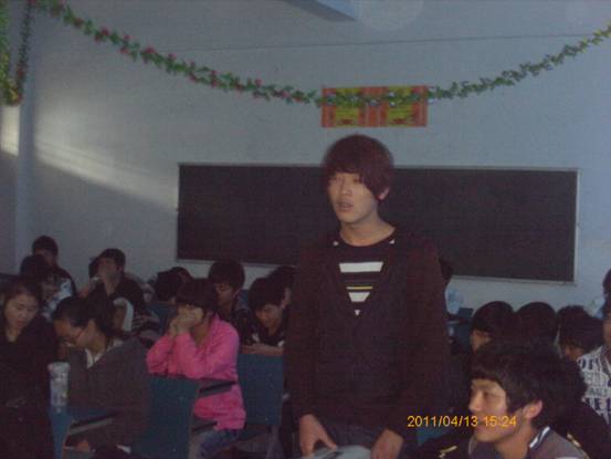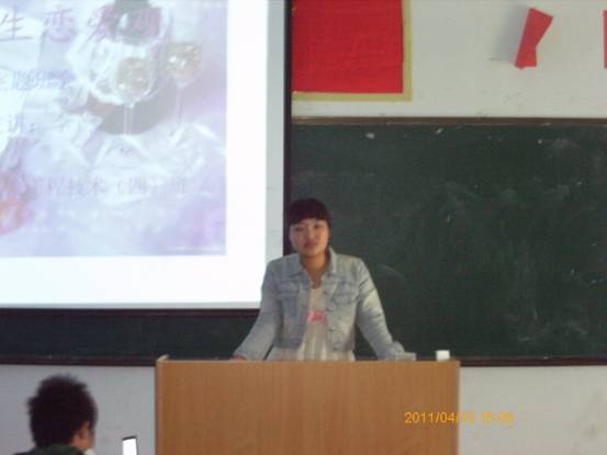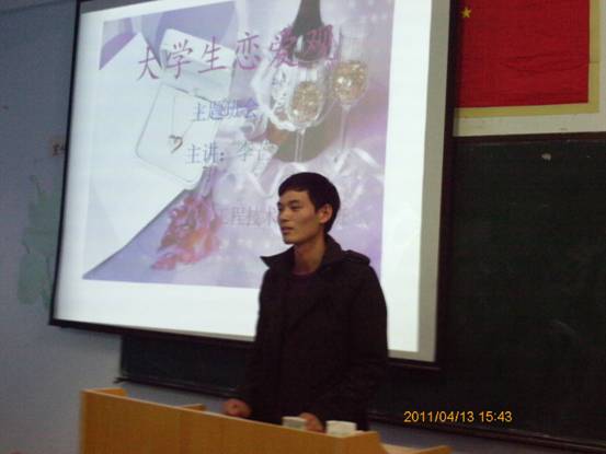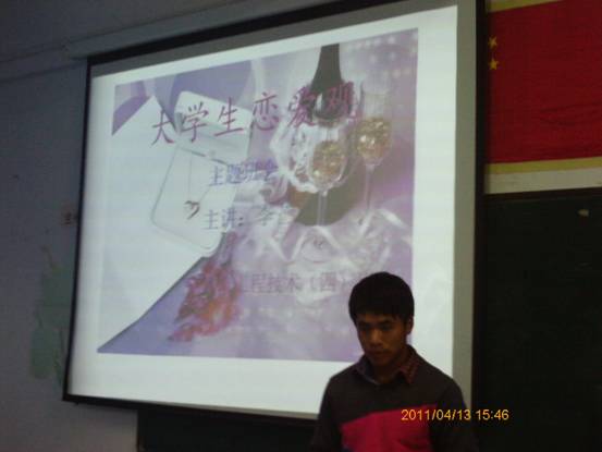 学生会同学的发言可以说是为我们以后谈恋爱做了一个标准呀!以后谈就应该做到这“三个有利于”。此已是大一下学期,我们也很快就要踏入社会,走向人生的另一个征程,如果在此能遇到一个可以与人携手终身、相伴到老的人生不也是人生一大幸事吗!但恋爱不是随便的爱情更不是儿戏,一但投入,我们就该拿出整片心来对待,在坐的可能是独生子女,可能从没有受过累,吃过苦,但人生之路不可能是平坦的,一个好的伴侣就是你的希望,你的支点,你的加油站,希望同学们下课后认真思考,积极面对、理解爱情、尊敬爱情,理性恋爱,文明恋爱,谢谢!